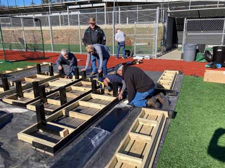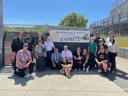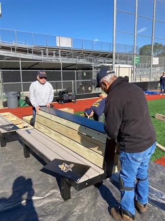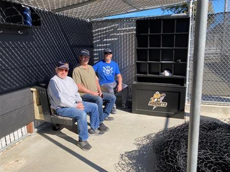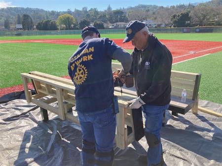 Volunteers with the club designed and built new benches for the Novato High School baseball stadium dugout. The benches provide a lot more room and storage area to keep the home team comfortable and ready to play. Go Hornets!!