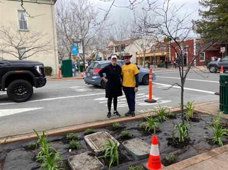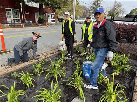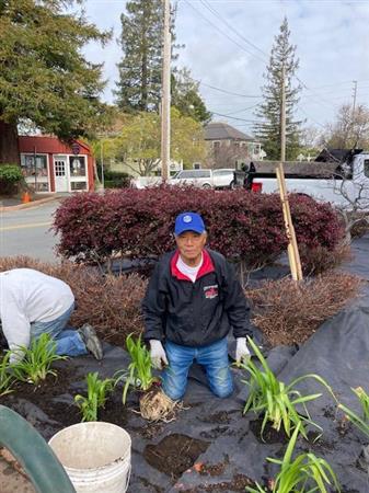 Two corners at Grant and Reichert Avenues got a total make-over thanks to 4 Novato Rotary Clubs. The ground was cleared, new soil added and dozens of plants put in. One more corner is due for similar treatment in a couple of weeks.