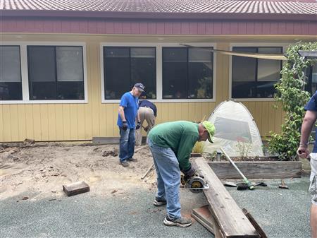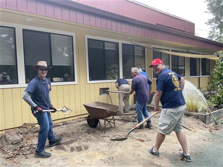 Members of RCI helped out by removing an old sandbox, planters and storage area at the North Bay Community Center. This is in preparation for a new play area to be installed next month. Hard work, but for a good cause.